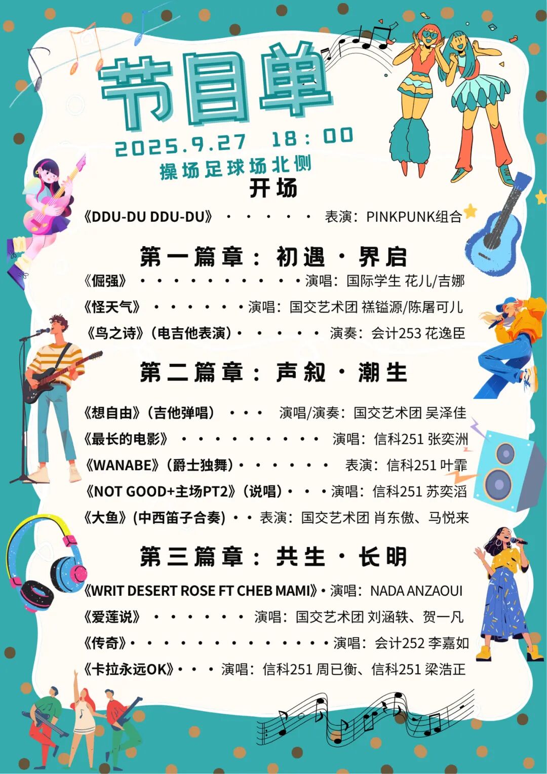随着新学期的开始,我们诚挚地邀请您参加即将举办的“Beats&Greens”2025级国际交流学院新生草坪音乐会暨第十四届海外风文化艺术节这是一个结合了音乐、艺术与自然的盛会,旨在为您带来一场视听盛宴,同时感受国际文化的多样性。