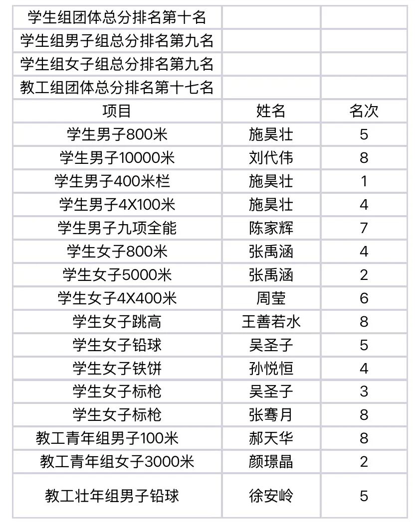 同样动人的风景,也在赛场之外。不妨把目光投向那些始终站在终点线旁,弯腰掐表、目光专注的裁判员;那些在操场上来回穿梭,为运动员递水搀扶的志愿者;还有那些在清晨和日暮时默默整理器材、打扫场地的后勤老师。这份无声的付出,是此次运动会最深沉、最坚实的力量。